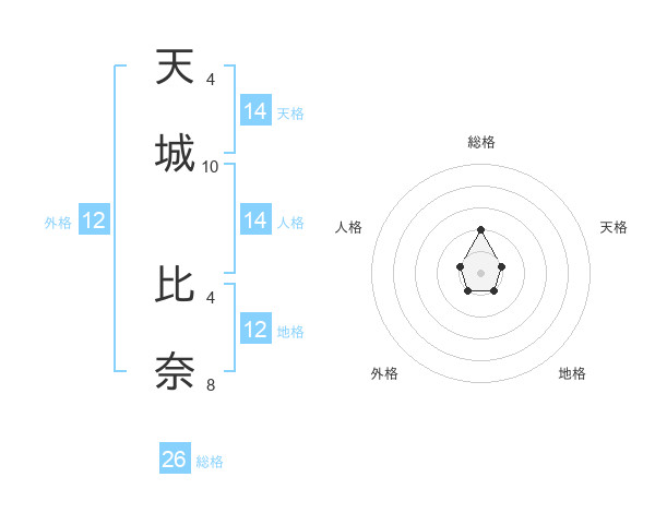 天城 比奈さんの天格は14画の1点!