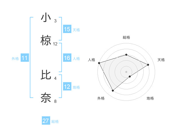 小椋 比奈さんを姓名の画数から五運を鑑定