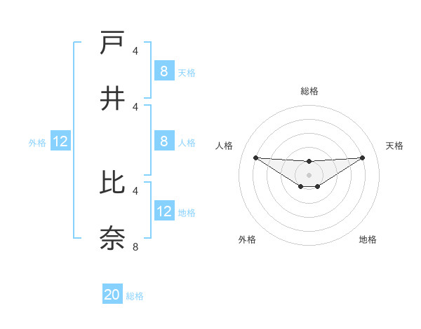 戸井 比奈さんの天格は8画の4点!