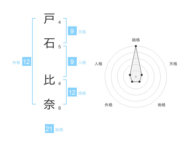 戸石 比奈さんの総格は21画の5点!