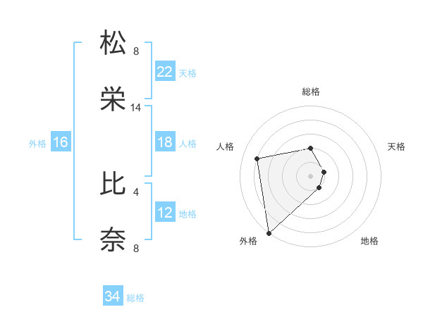 松栄 比奈さんを姓名の画数から五運を鑑定