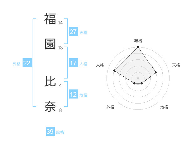 福園 比奈さんの外格は22画の1点!