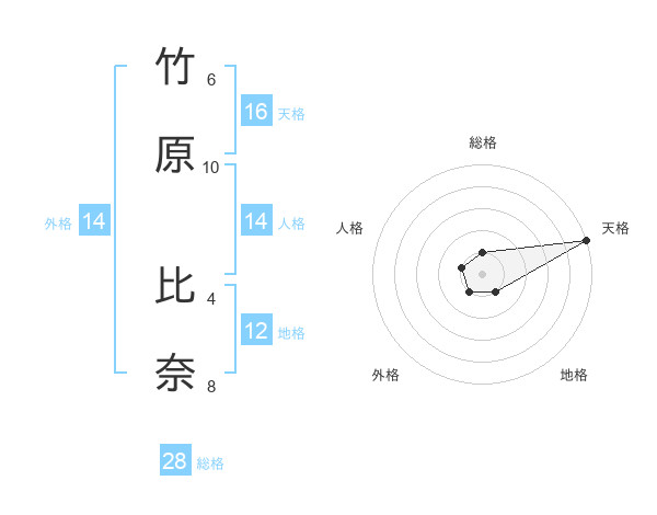 竹原 比奈さんの天格は16画の5点!