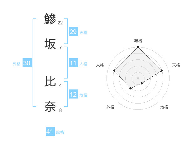 鰺坂 比奈さんの総格は41画の5点!