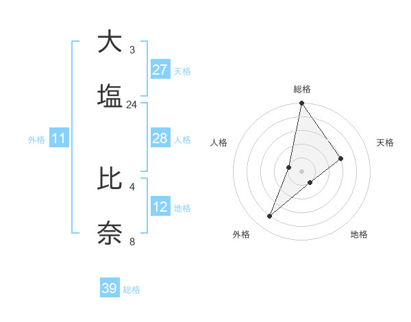 大塩 比奈さんの総格は39画の5点!