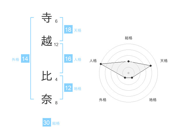 寺越 比奈さんの地格は12画の1点!