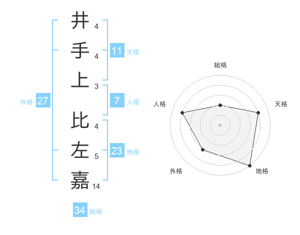 井手上 比左嘉さんを姓名の画数から五運を鑑定