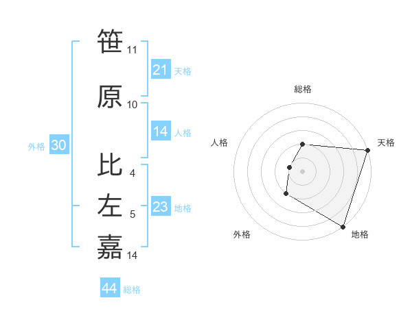 笹原 比左嘉さんを姓名の画数から五運を鑑定