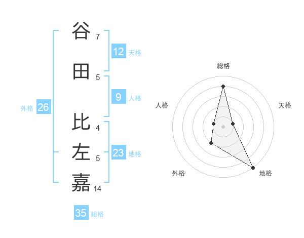 谷田 比左嘉さんを姓名の画数から五運を鑑定