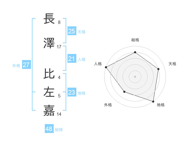 長澤 比左嘉さんを姓名の画数から五運を鑑定