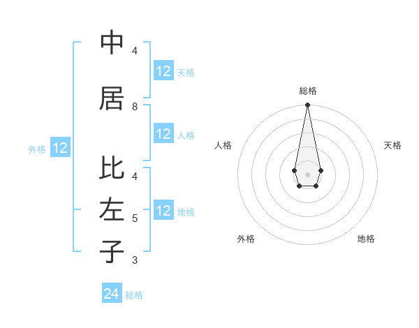 中居 比左子さんの外格は12画の1点!