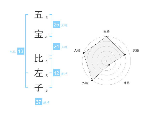 五宝 比左子さんの総格は37画の5点!