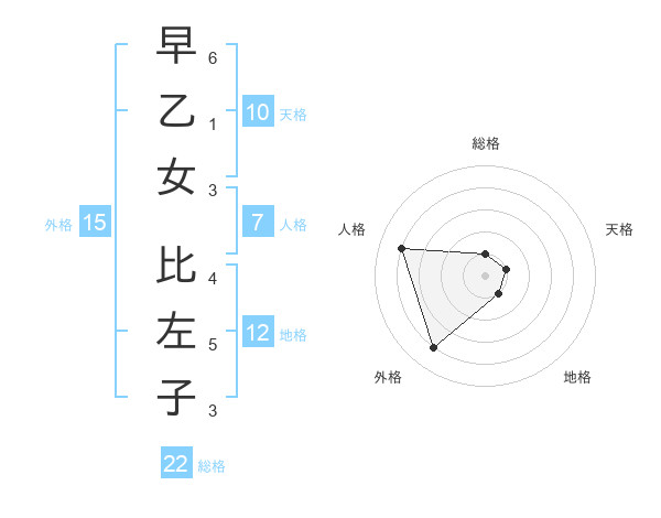 早乙女 比左子さんの総格は22画の1点!