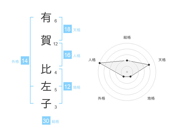 有賀 比左子さんを姓名の画数から五運を鑑定