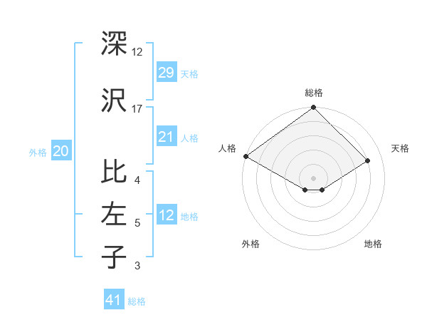 深沢 比左子さんを姓名の画数から五運を鑑定