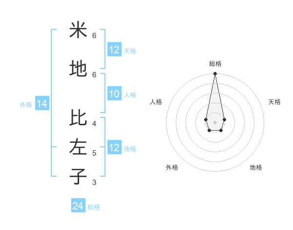 米地 比左子さんの総格は24画の5点!