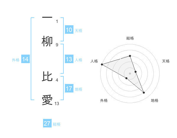 一柳 比愛さんの総格は27画の3点!
