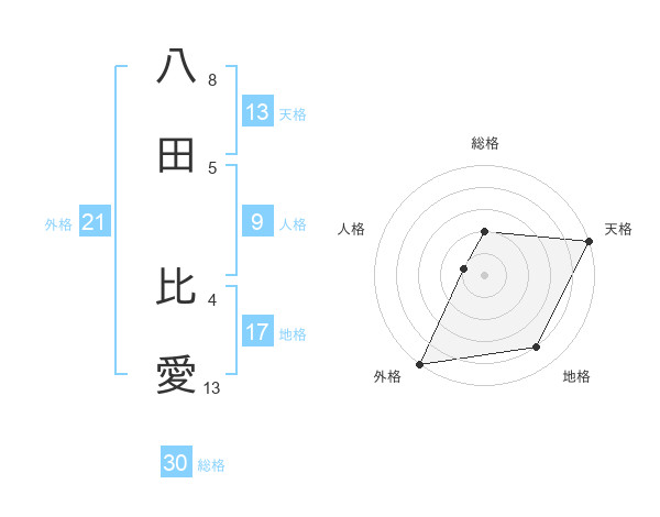 八田 比愛さんの天格は13画の5点!