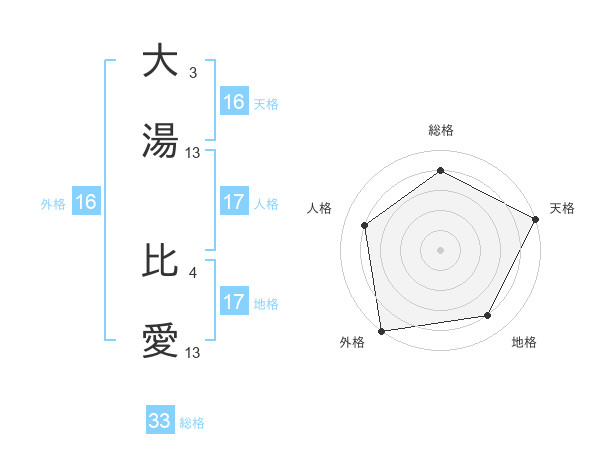 大湯 比愛さんの天格は16画の5点!