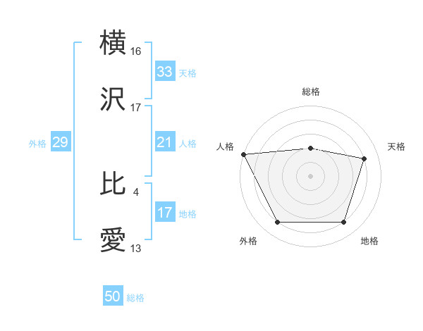 横沢 比愛さんを姓名の画数から五運を鑑定