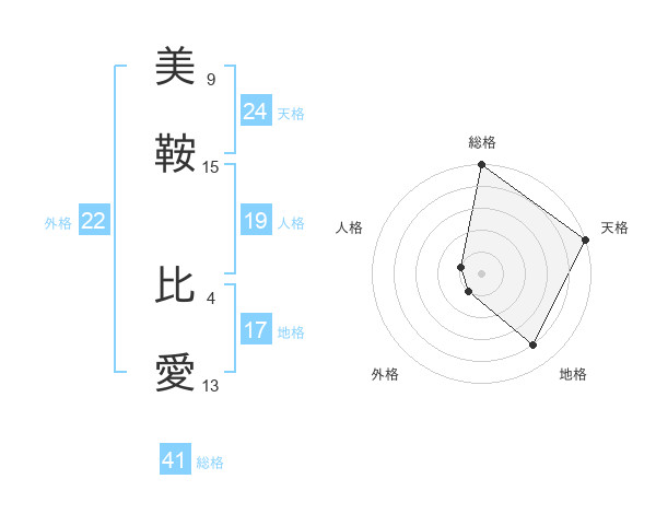 美鞍 比愛さんの天格は24画の5点!