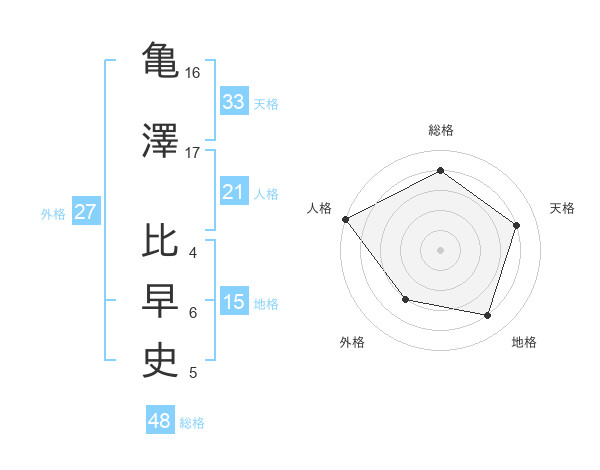 亀澤 比早史さんの人格は21画の5点!