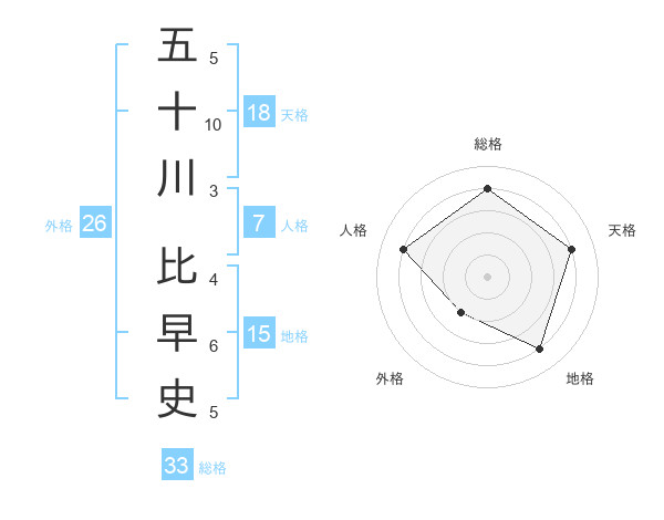 五十川 比早史さんを姓名の画数から五運を鑑定