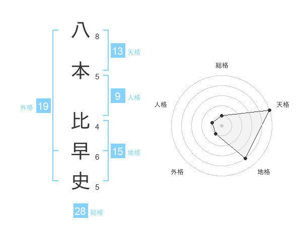 八本 比早史さんの天格は13画の5点!