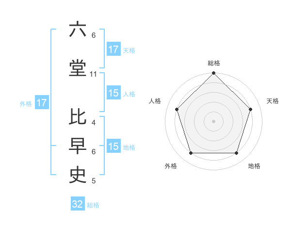 六堂 比早史さんの天格は17画の4点!