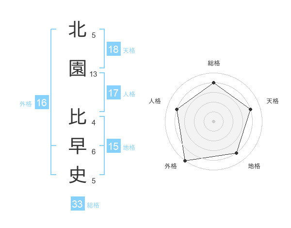 北園 比早史さんの総格は33画の4点!