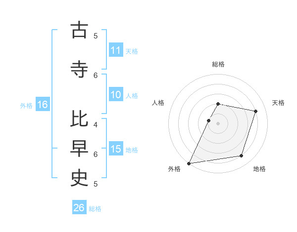 古寺 比早史さんを姓名の画数から五運を鑑定