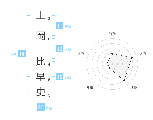 土岡 比早史さんの天格は11画の4点!