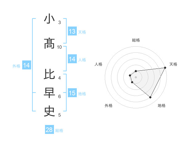 小髙 比早史さんの天格は13画の5点!