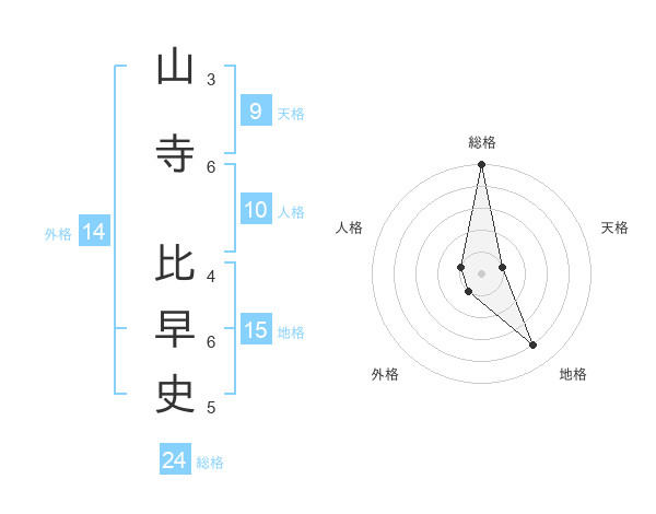山寺 比早史さんの総格は24画の5点!