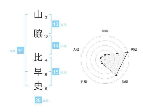 山脇 比早史さんの天格は13画の5点!
