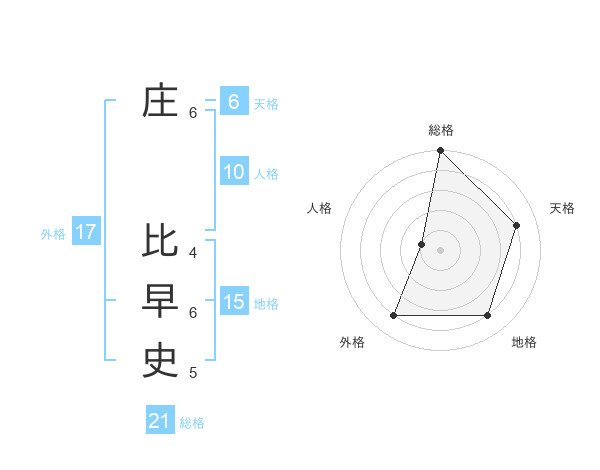 庄 比早史さんの総格は21画の5点!