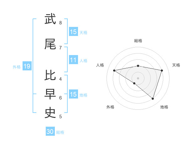 武尾 比早史さんの総格は30画の2点!