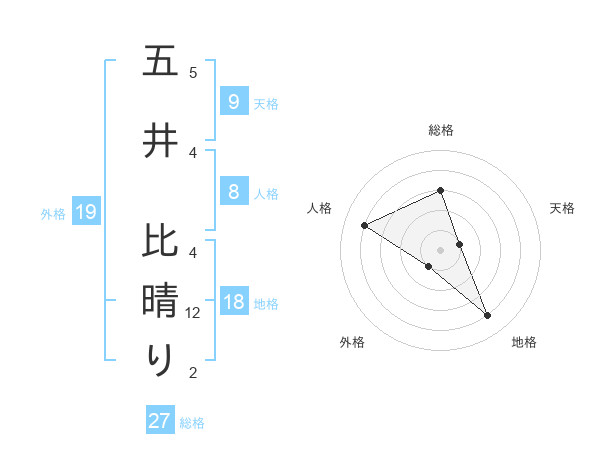 五井 比晴りさんの総格は27画の3点!