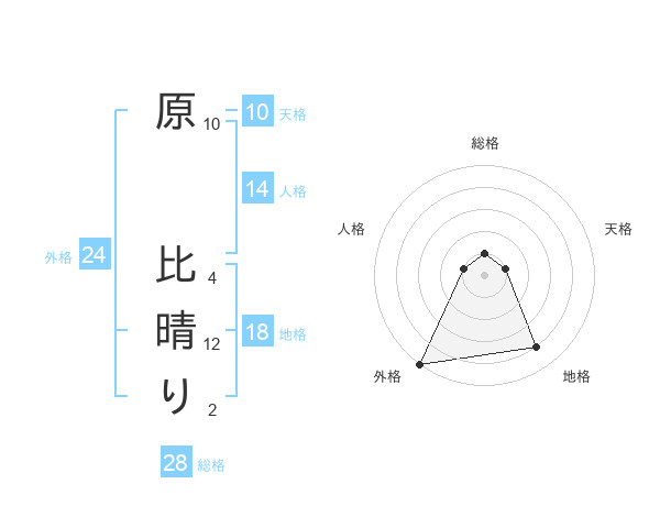 原 比晴りさんの外格は24画の5点!