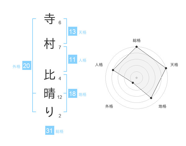 寺村 比晴りさんを姓名の画数から五運を鑑定