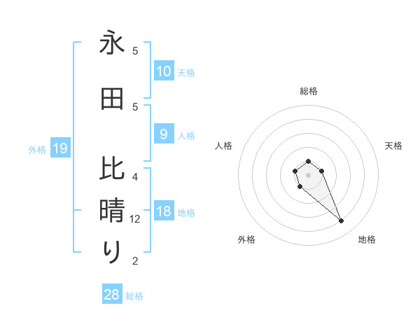 永田 比晴りさんを姓名の画数から五運を鑑定