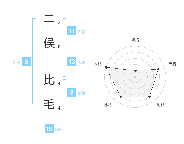 二俣 比毛さんを姓名の画数から五運を鑑定