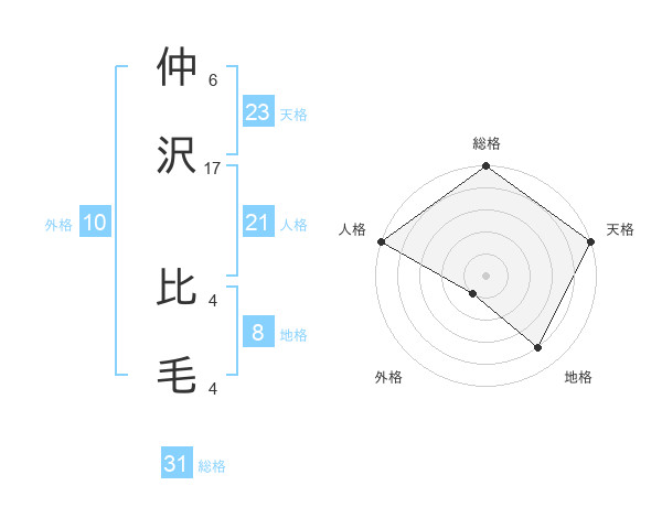 仲沢 比毛さんの総格は31画の5点!