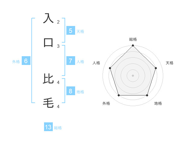 入口 比毛さんの総格は13画の5点!