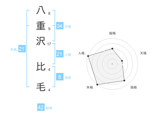 八重沢 比毛さんの総格は42画の3点!