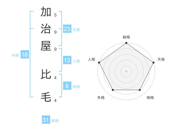 加治屋 比毛さんを姓名の画数から五運を鑑定