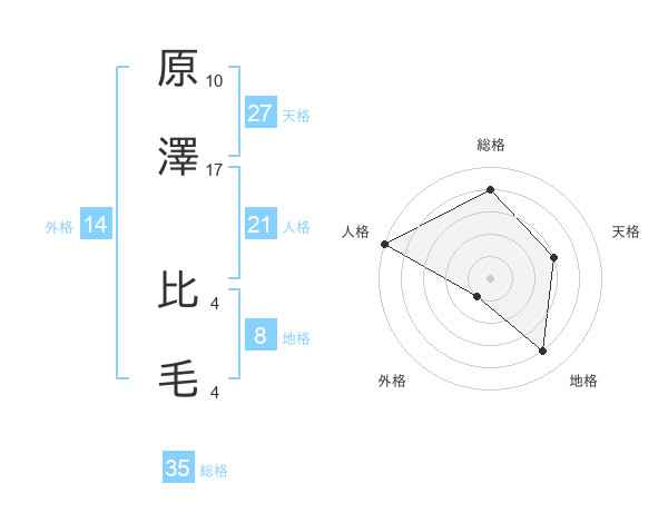 原澤 比毛さんの総格は35画の4点!