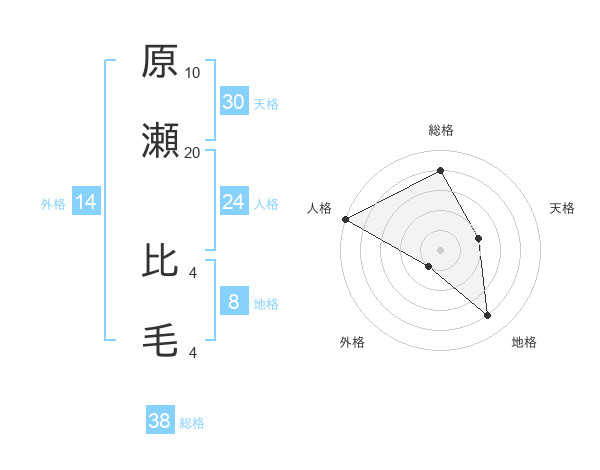 原瀬 比毛さんの総格は38画の4点!