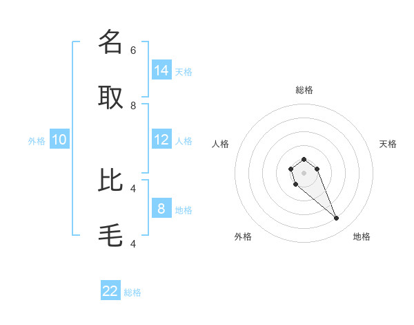 名取 比毛さんの地格は8画の4点!