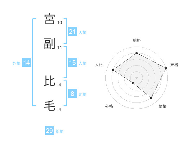 宮副 比毛さんを姓名の画数から五運を鑑定